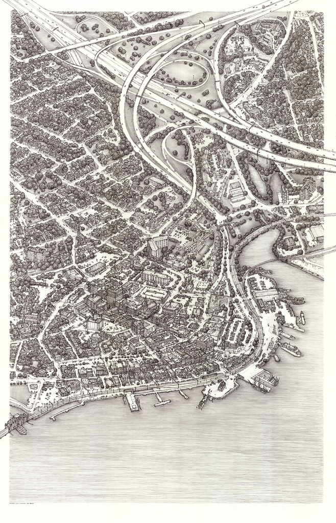 24" x 36" Print of Aerial Birdseye View of New London Connecticut as it was before the collapse of the First Congregational Church.